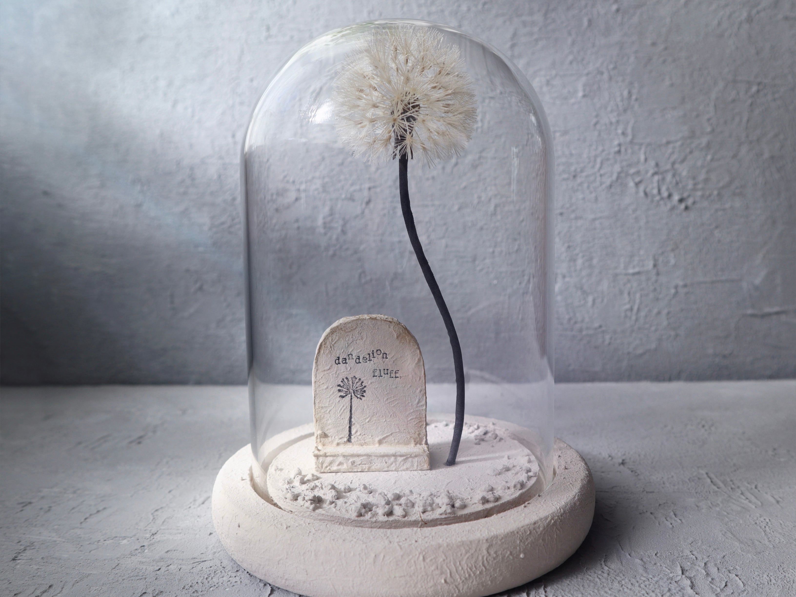 どこにでも生えているこの植物に非現実な空気感を纏わせたい、そんな考えから生まれた綿毛のガラスドームです。